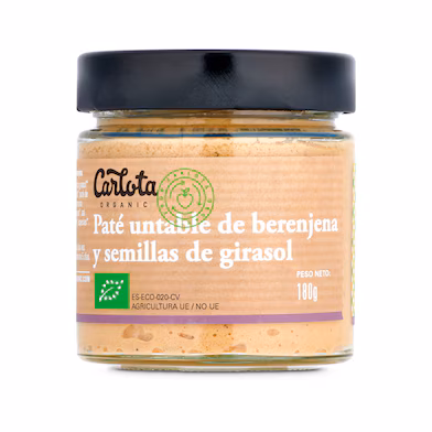 Paté de berenjena y semillas de girasol Carlota organic frasco 180 g.