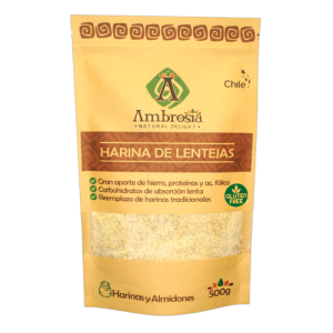 Harina de Lentejas, Libre de gluten, 500 grs, marca Ambrosia
