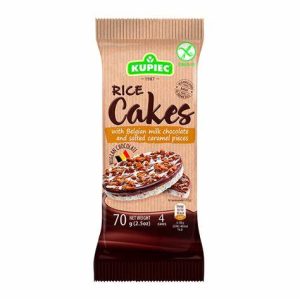 Galletas de Arroz con Chocolate y Salted Caramel, sin Gluten ,70 grs, Marca Kupiec