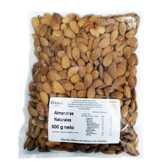 Almendras Naturales Sin Gluten, 500 Grs, Marca El Litral