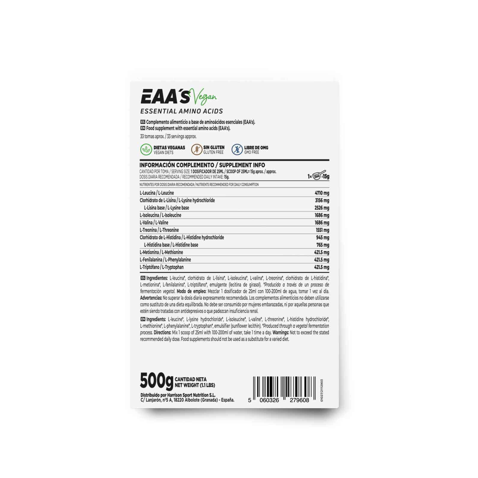Este producto, a diferencia de la mayoría de EAA’s del mercado, es 100% apto para vegetarianos y veganos.