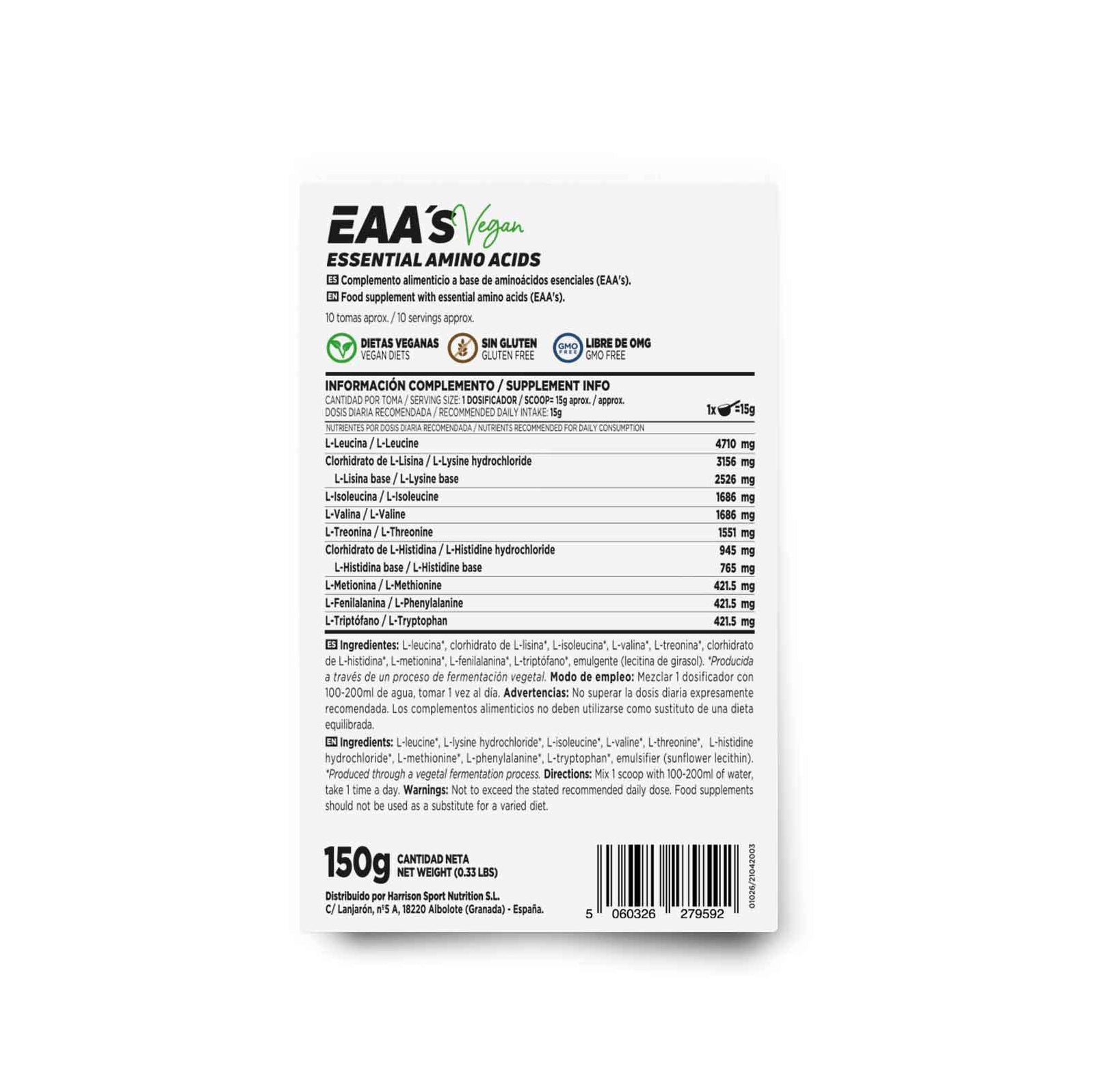 Este producto, a diferencia de la mayoría de EAA’s del mercado, es 100% apto para vegetarianos y veganos.