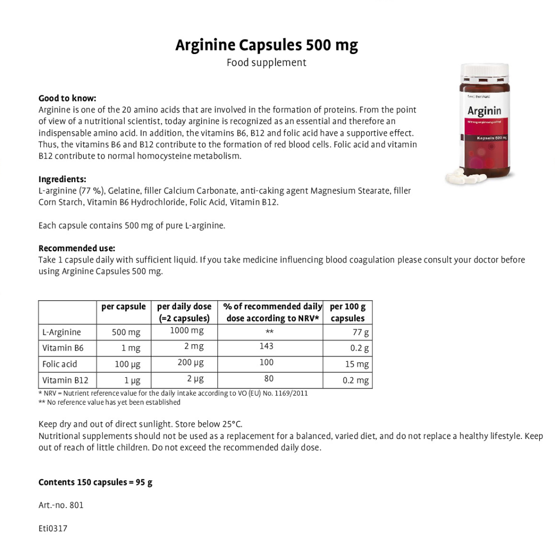 • Cada cápsula contiene 500 mg de L-arginina pura