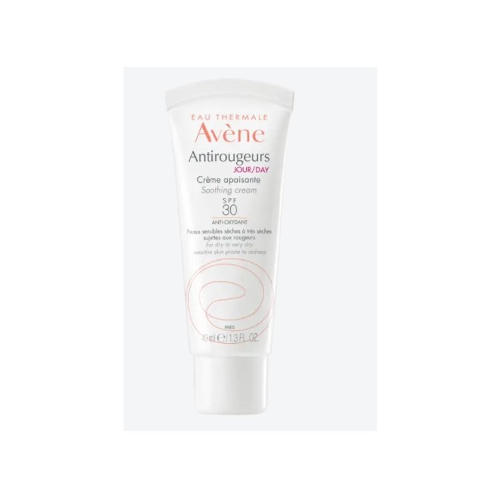 Avene Antirojeces Crema Hidratante Día SPF 30 es calmante, reductora y preventiva de las rojeces de la piel. Deja la piel firme y sedosa gracias a su textura cremosa. Tiene factor de proteccion SPF 30. Es adecuada para piel seca o muy seca.