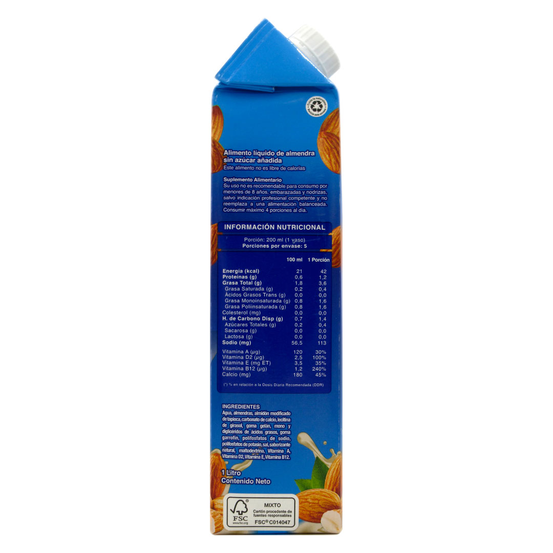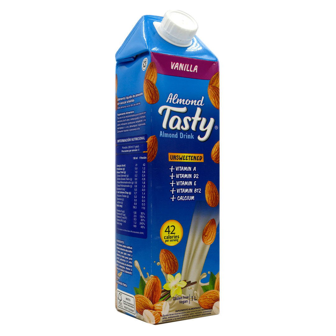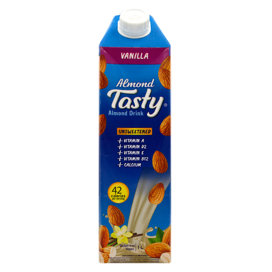 Bebida Vegetal de Almendras sabor Vainilla, Sin Azúcar, sin gluten, 1 lt, marca Tasty