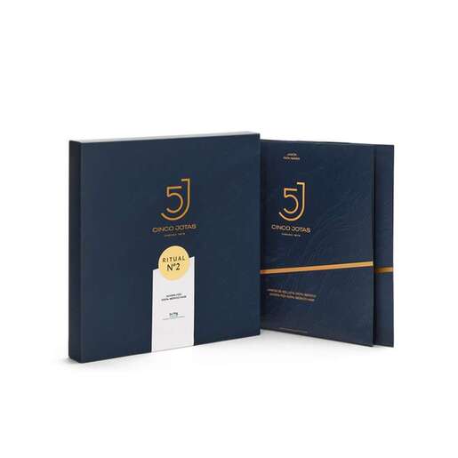 Caja especial para regalo que contiene 2×70 grs de jamón 100% ibérico de bellota Cinco Jotas 5J.