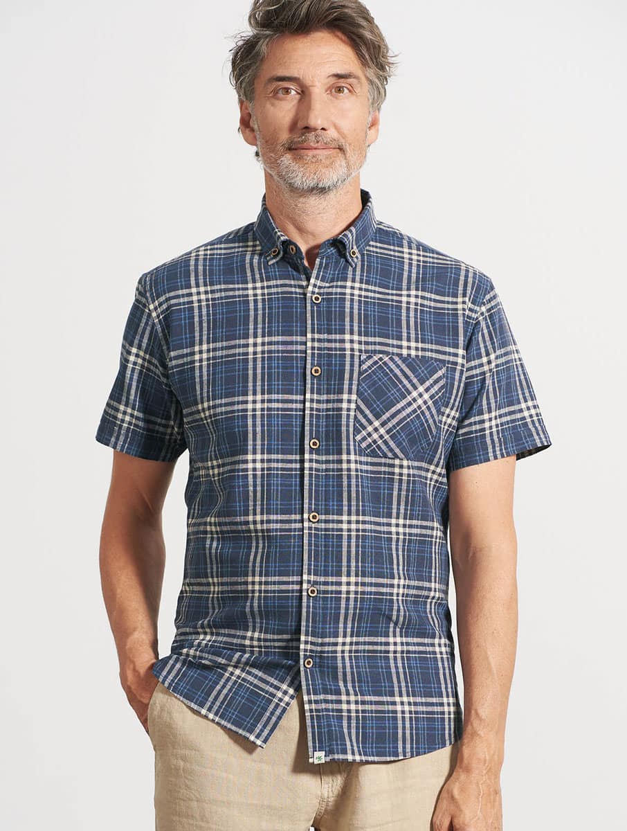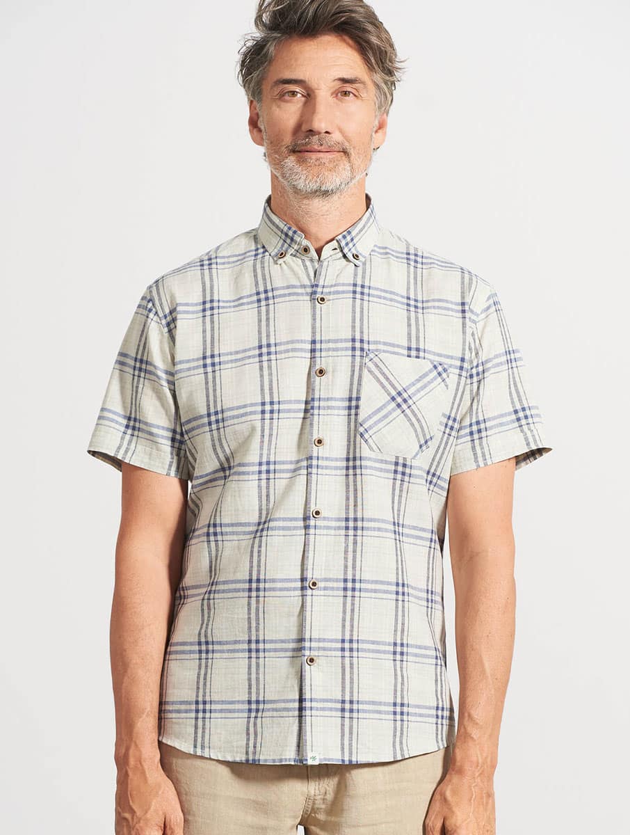 La camisa de manga corta a cuadros es ligera y con un tejido orgánico súper fresco. Es perfecta para controlar la sudoración y cuidar la piel durante las estaciones calurosas.
