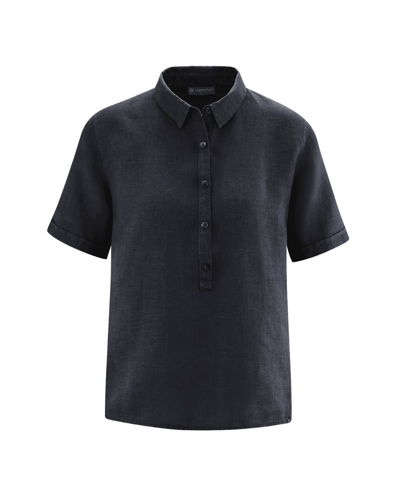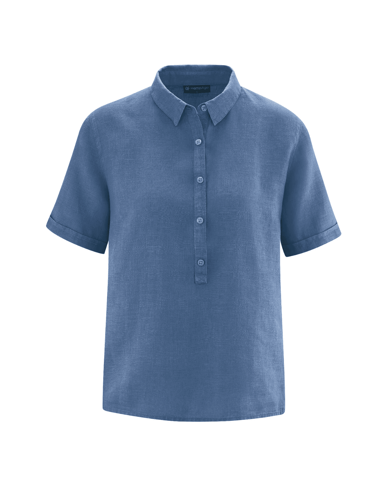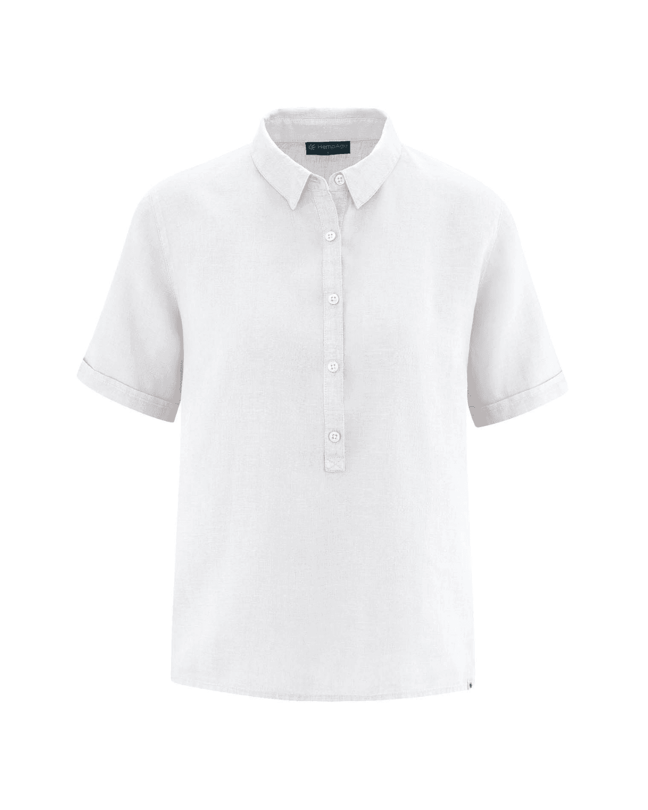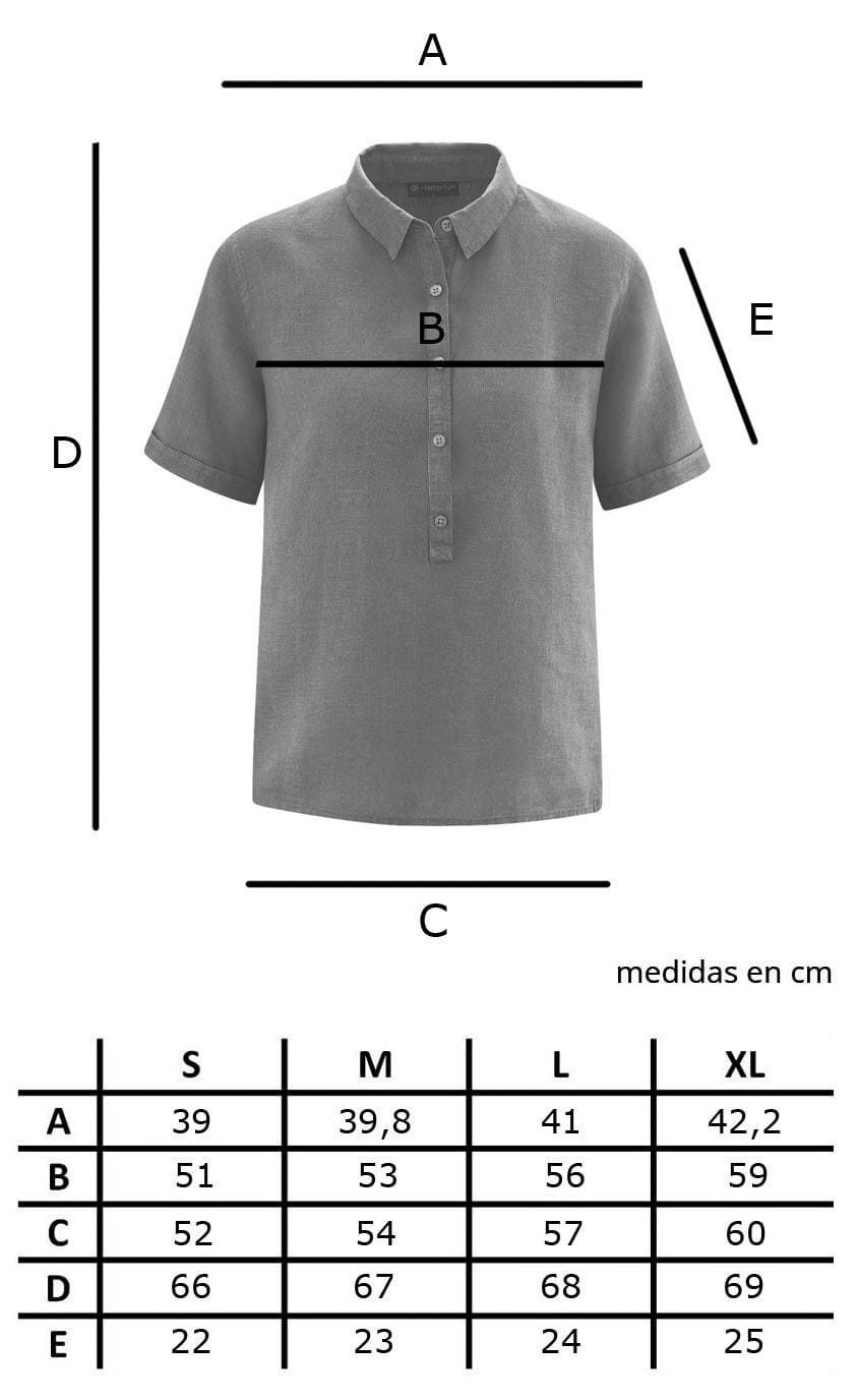 La camisa manga corta mujer de cáñamo está disponible en color azul, blanco, verde y negro.
