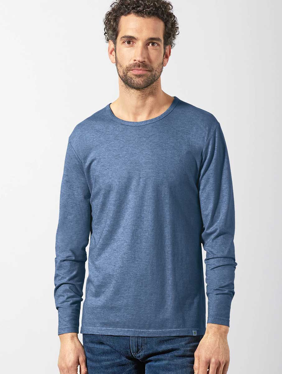 Camiseta hombre manga larga de tejido jaspeado.