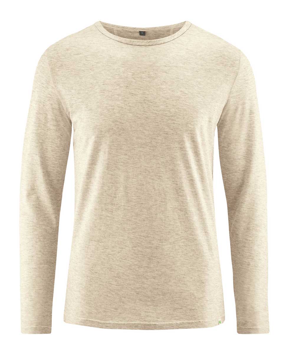 La camiseta hombre manga larga está confeccionada en una mezcla de 80% de algodón orgánico con certificado Organic Content Standard (OCS), 14% de cáñamo y 6% de lana de yak. Los tintes utilizados cuentan con el sello OEKO-TEX® Standard 100, garantizando así un bajo impacto medioambiental.