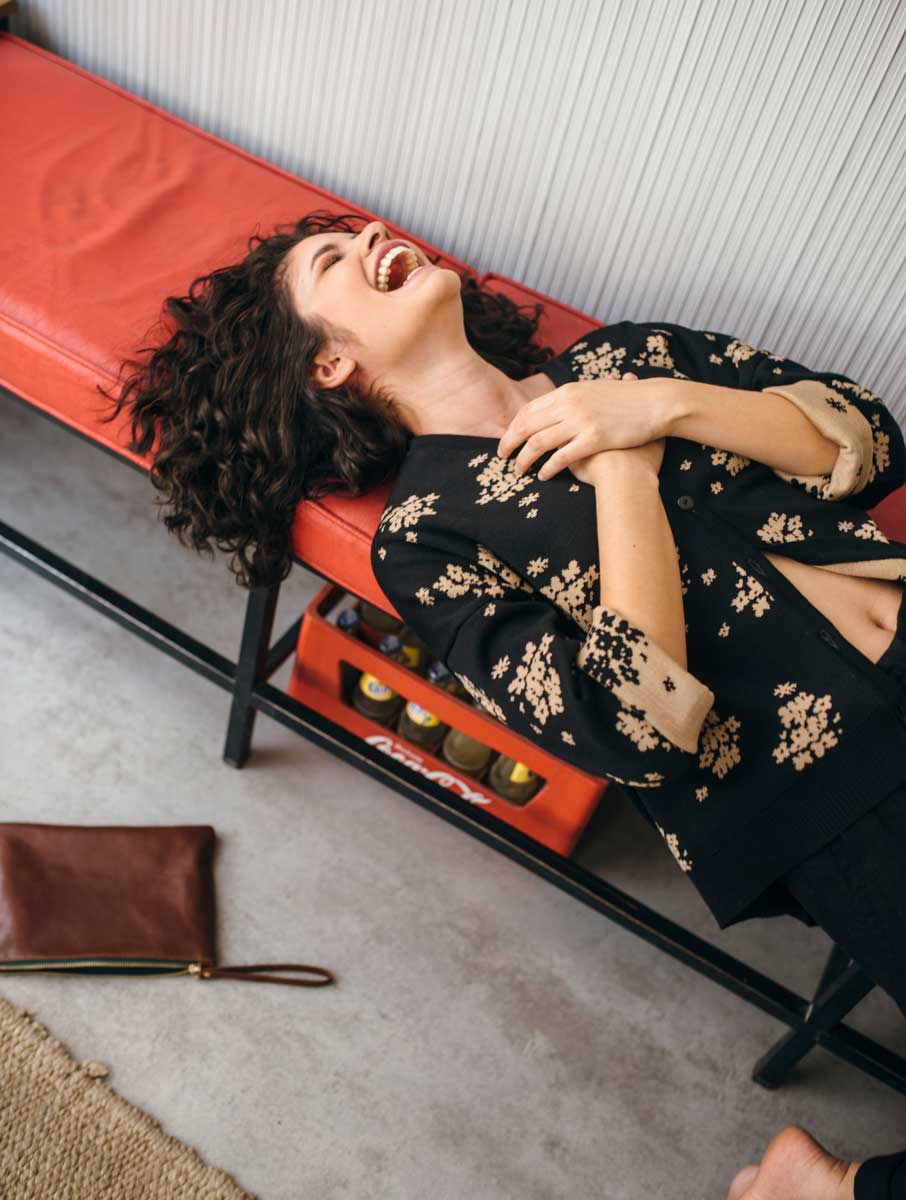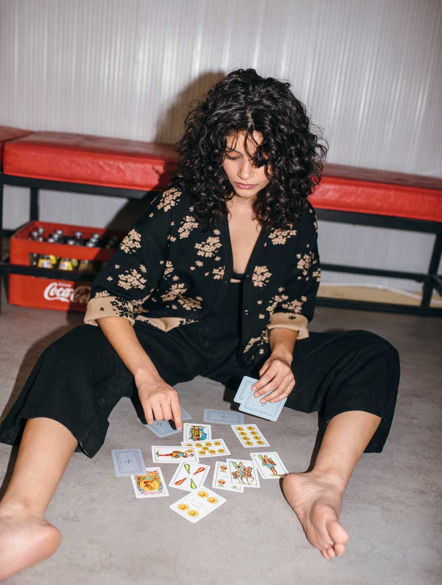 De color negro con flores en camel, este cardigan cuenta con botones negros de corozo natural. Es perfecto como prenda exterior en otoño.