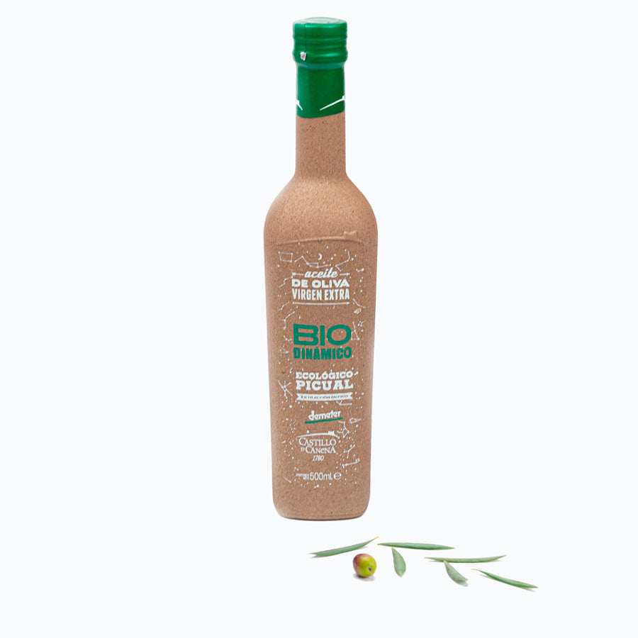 Aceite de Oliva Virgen Extra que cuenta con la certificación DEMETER, la cual garantiza que se han seguido correctamente todos los procesos de la agricultura biodinámica. Tiene un frutado alto de aceituna verde, hoja de olivo, tomatera y aromáticas como hierbabuena o menta. En boca tiene buen cuerpo. Su amargor medio está correctamente compensado y equilibrado con el picante, dando lugar a un sabor que recuerda a la alcachofa, el cardo o el caqui.