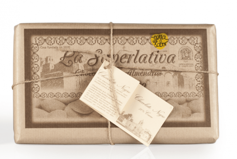 Ingredientes: Pasta de cacao, azúcar, almendras (20%), manteca de cacao, aroma de vainilla.