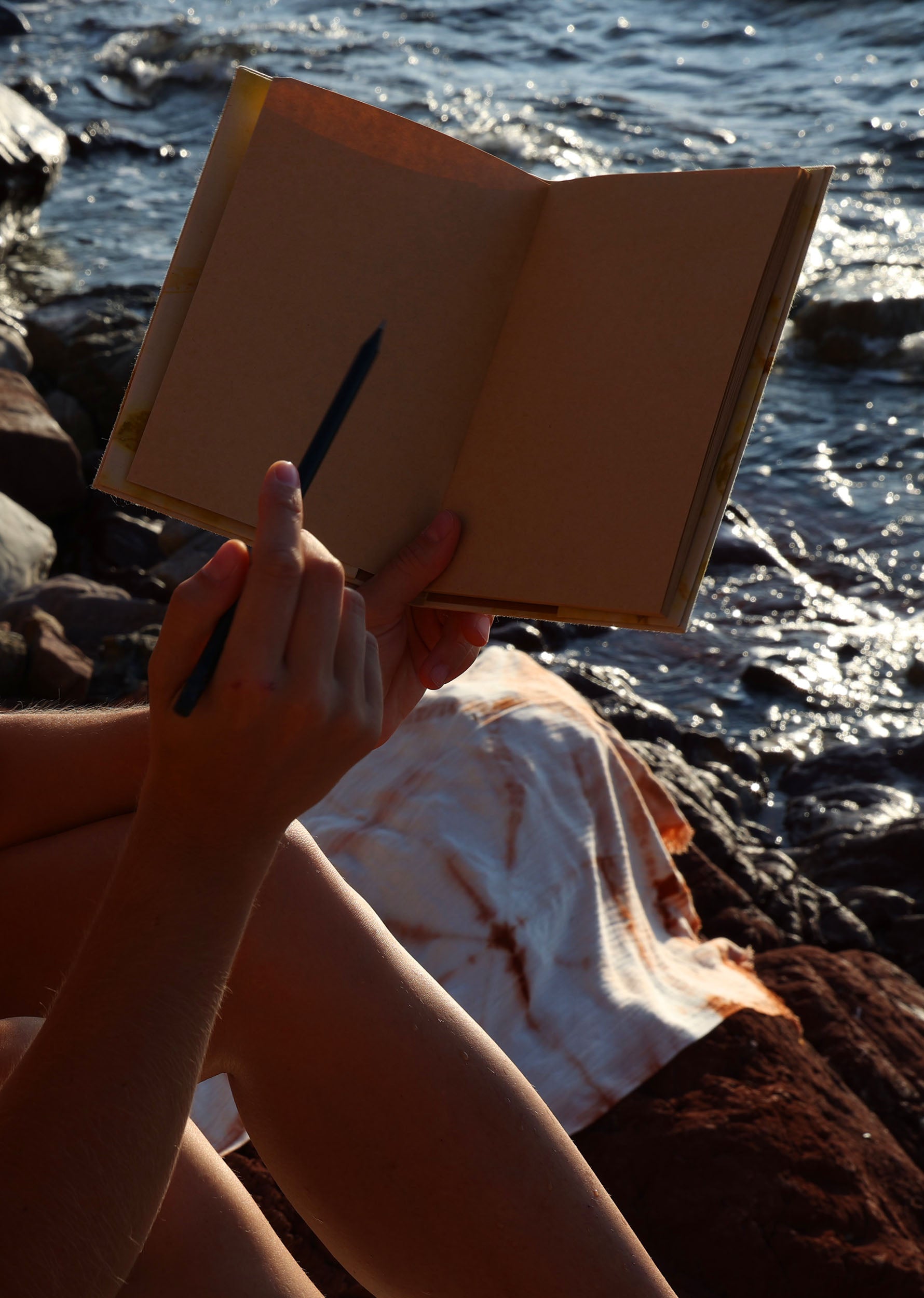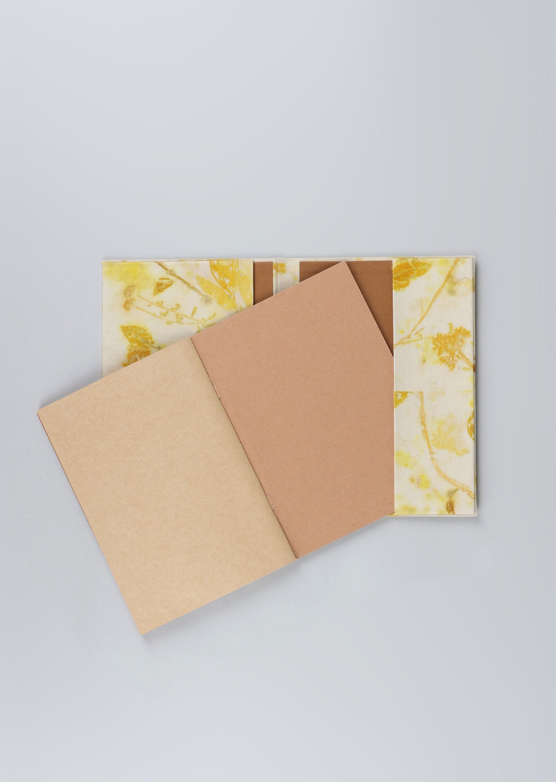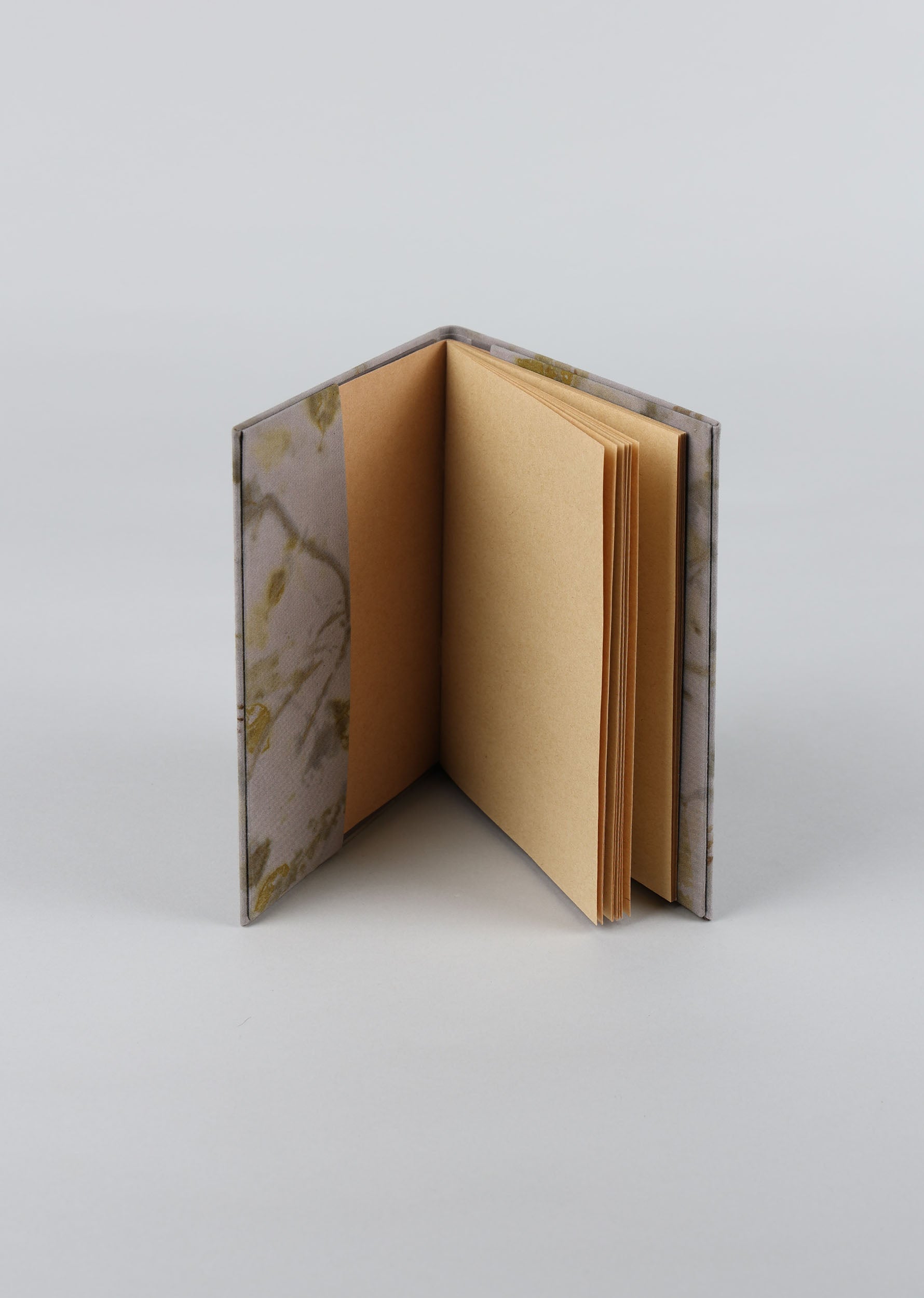 Cuaderno de campo encuadernado a mano con cubiertas de algodón teñidas con tintes naturales de estampación botánica en el taller de SONMO. Las cubiertas son independientes del cuadernillo interior, por lo que éste puede reemplazarse por otro nuevo una vez completado.