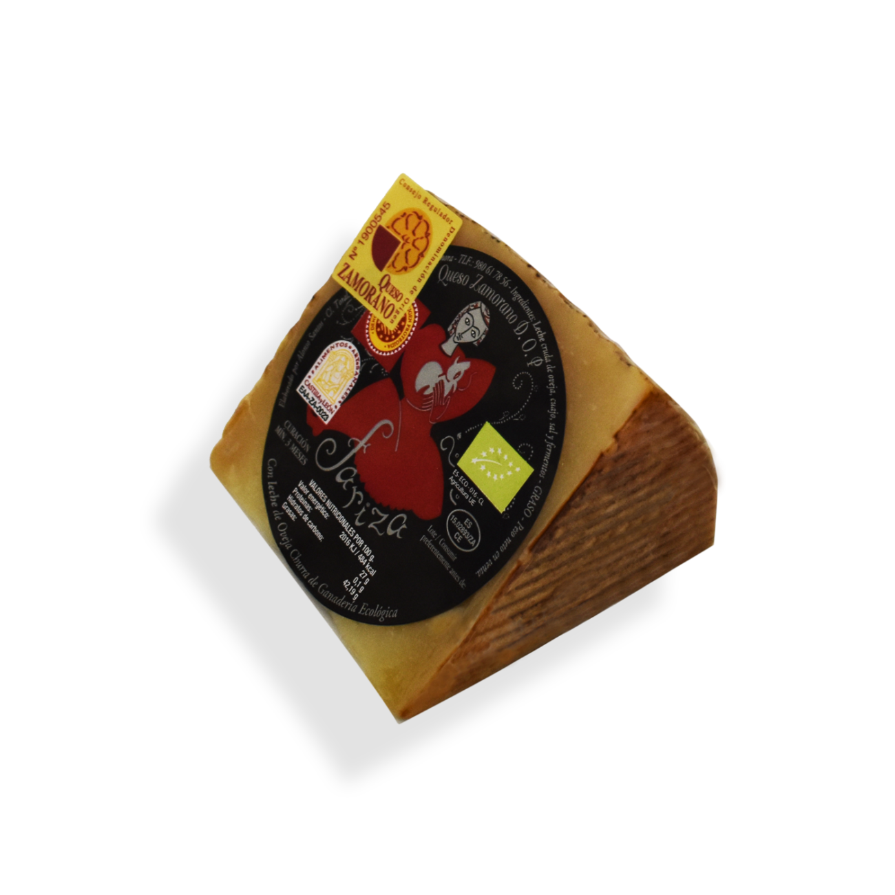 Exquisito queso curado de oveja zamorano D.O., elaborado con leche de oveja churra proveniente de ganadería ecológica y presentado en formato cuña. Ideal para atreverse a probar con el sabor original.