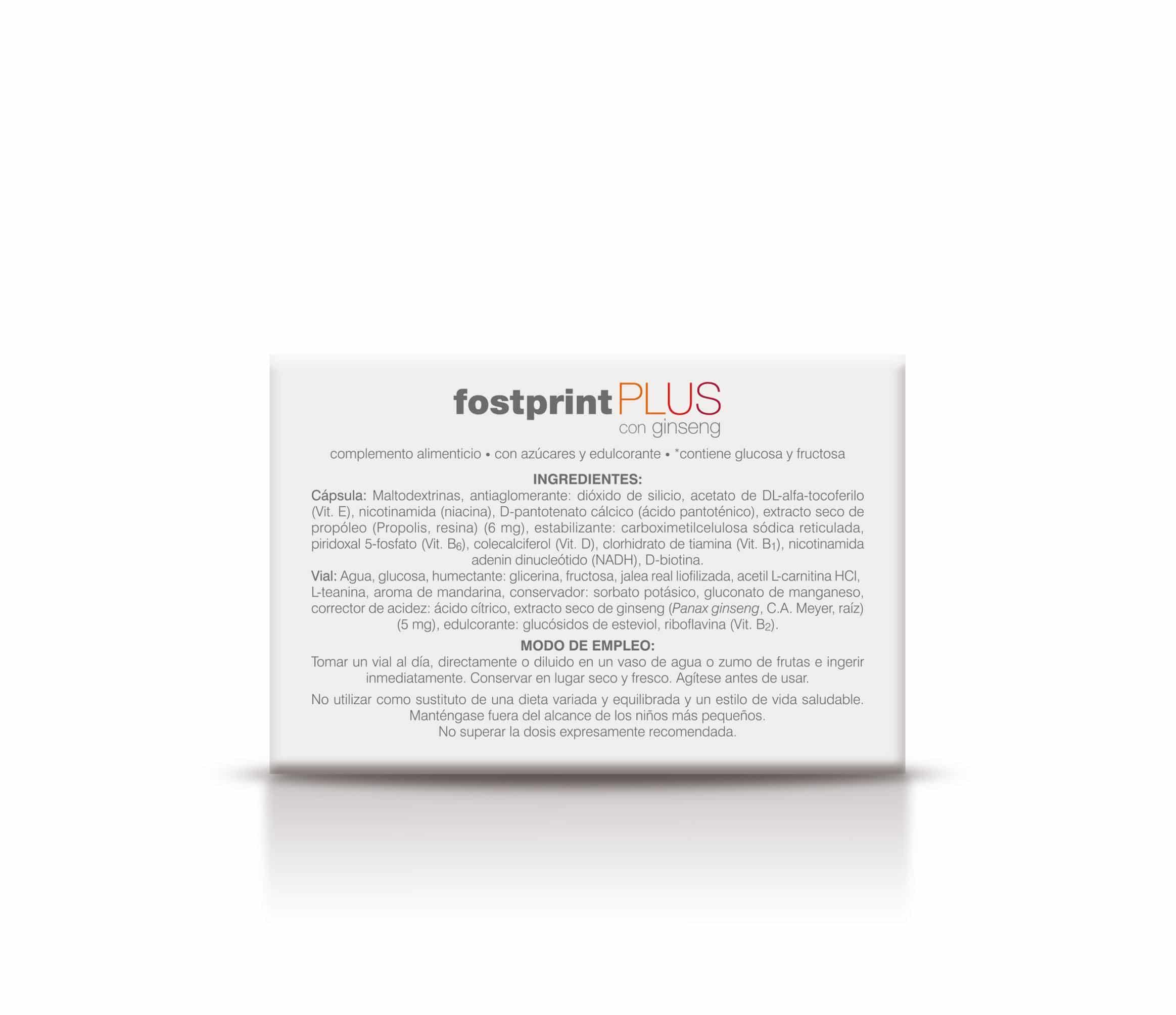 Fost Print Plus, con todos los beneficios del Fostprint Classic, recomendado para cubrir los requerimientos extra de energía en aquellas personas que necesitan mantener su energía en la actividad diaria, así como favorecer las facultades físicas y mentales, desde ejecutivos, trabajadores, amas de casa, estudiantes o personas de la tercera edad pero además, contiene ginseng.