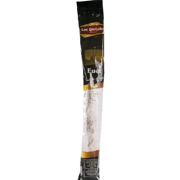 El Fuet Extra Los Quijales es un producto de charcutería elaborado con carne de cerdo seleccionada y especias naturales de la mejor calidad. Este producto es conocido por su sabor intenso y su textura suave y jugosa, lo que lo convierte en un alimento muy apreciado en la gastronomía española.