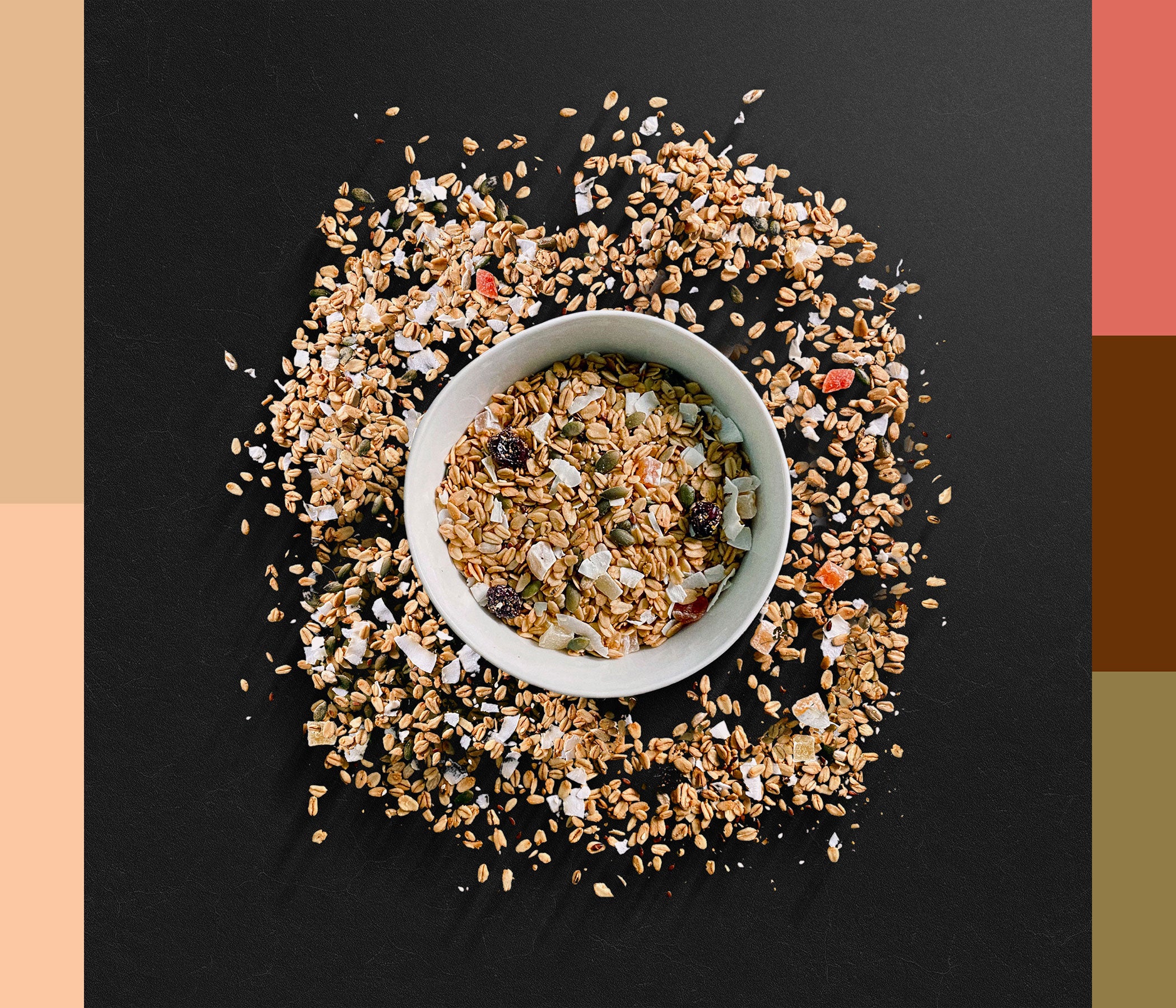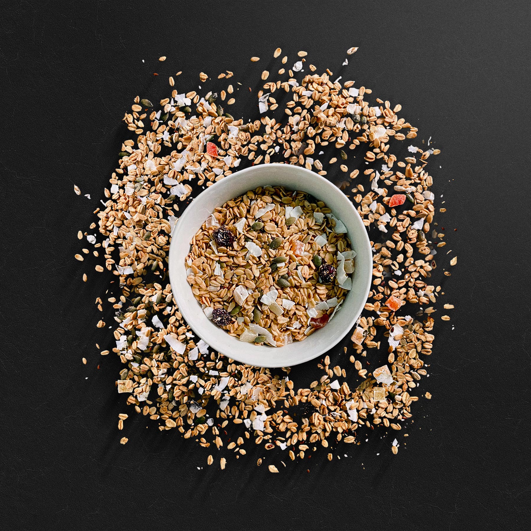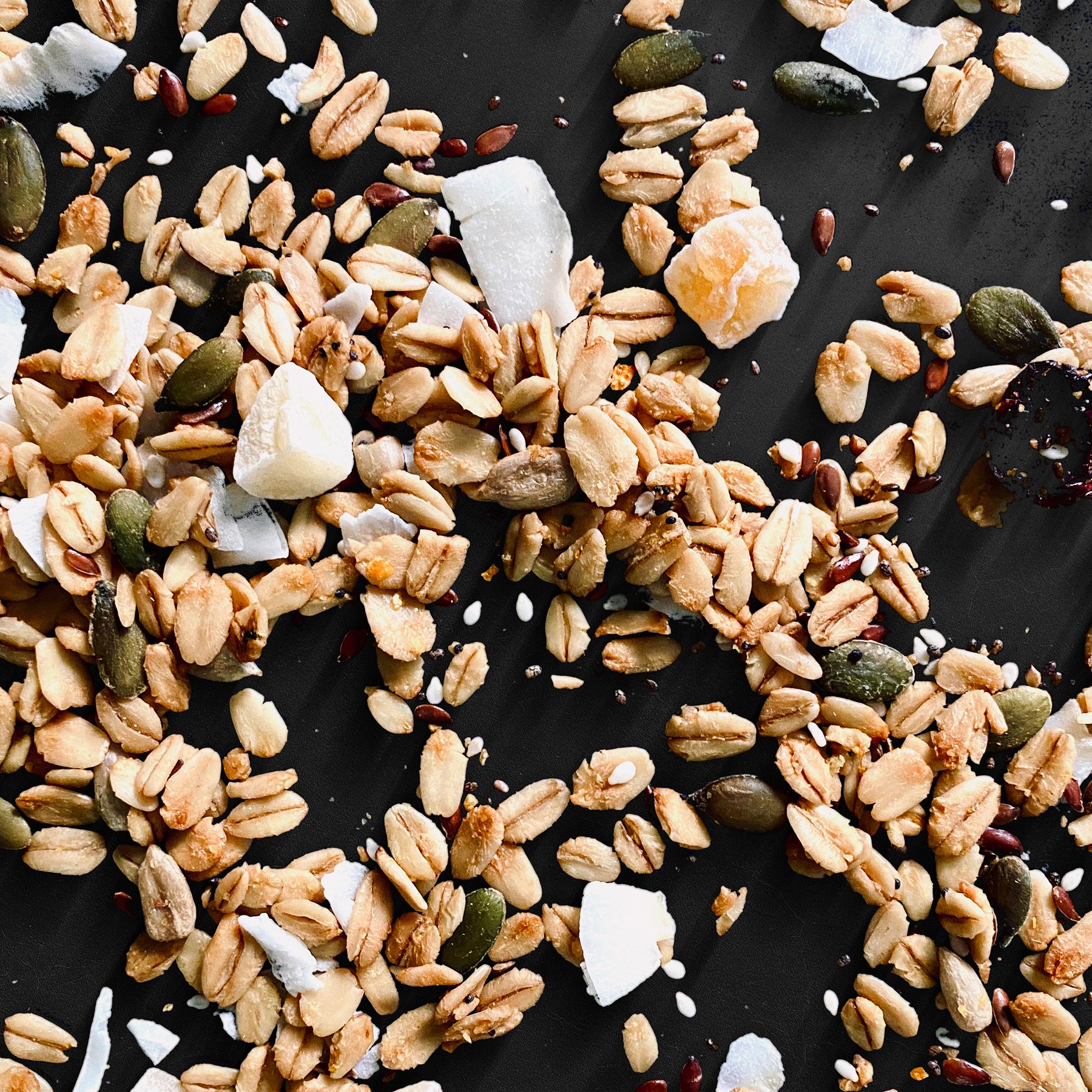 Avena, coco, papaya, pasas, semillas de lino, semillas de calabaza, azúcar integral.