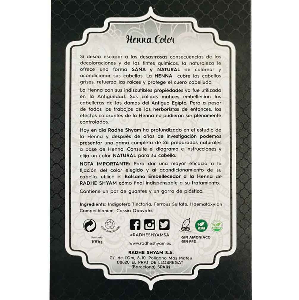 - Preparación: Vierta la dosis de la Henna en polvo en un recipiente: Añada dos cucharadas de Bálsamo embellecedor Radhe Shyam, y mézclelo todo. Diluya la mezcla con agua muy caliente hasta la obtención de una pasta untuosa y lisa. Déjela enfriar: El preparado estará listo cuando este tibio.