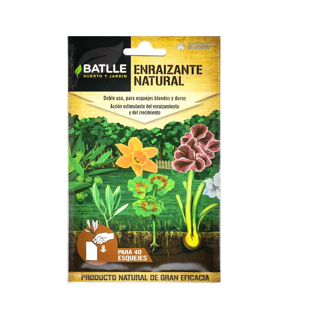 Las hormonas enraizantes en polvo de Batlle estimulan la aparición de raíces tanto en esquejes leñosos como herbáceos, al mismo tiempo que aceleran el desarrollo radicular, consiguiendo un elevado porcentaje de esquejes arraigados y un rápido desarrollo de éstos. Incorpora un fungicida que asegura la desinfección y protección de los esquejes. Su formato en polvo listo para el uso lo convierte en un producto fácil de utilizar y de máxima eficacia y protección.