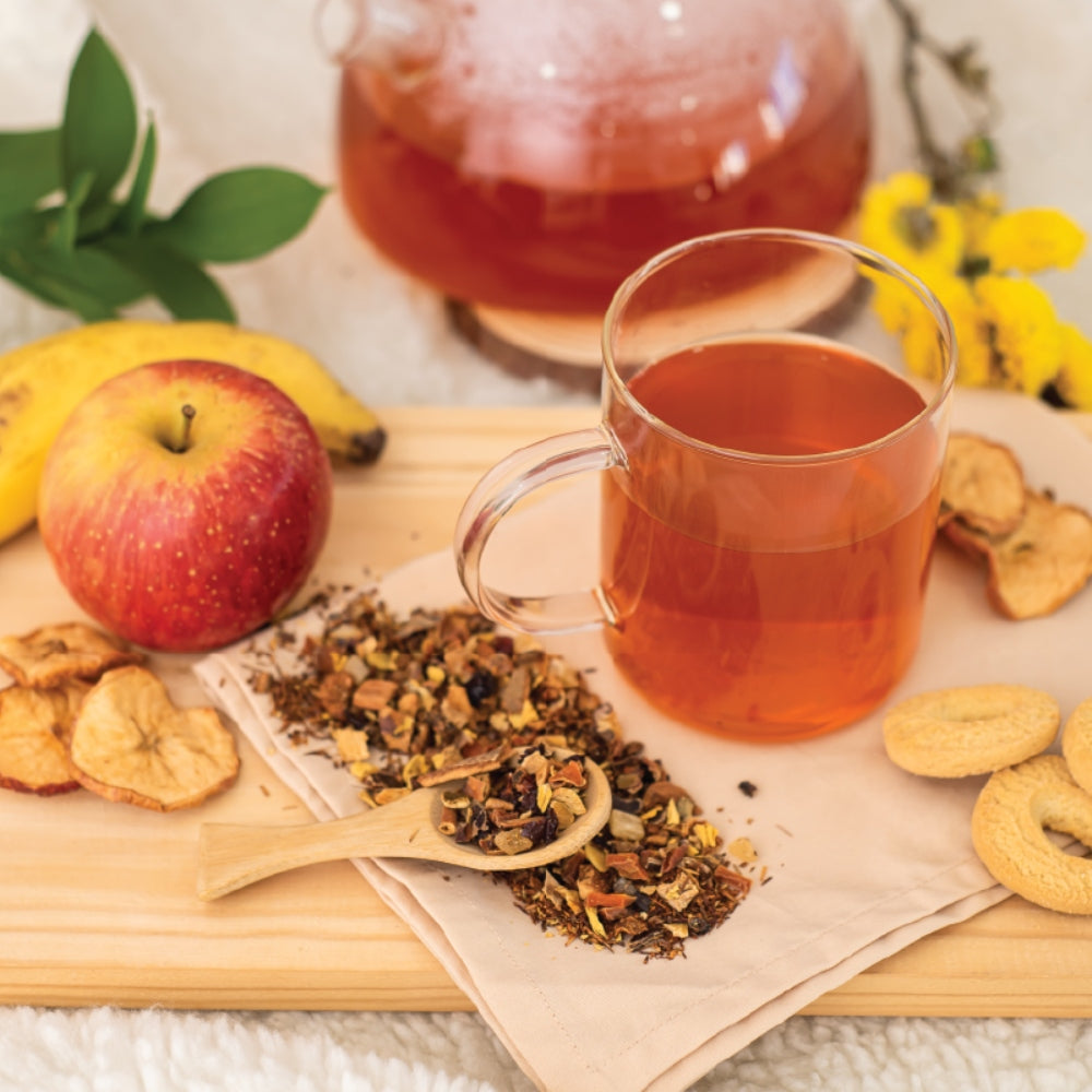Infusión ideal para los amantes de sabores dulces y/o especiados: una maravillosa mezcla con aroma seductor, exquisito y rico en vitaminas, antioxidantes y, además, digestiva. Para potenciar el sabor más dulce se puede añadir una nube de leche o bebida vegetal. La calabaza es un fruto de otoño que desde la antigüedad ha cobrado importancia por sus múltiples propiedades. Los Tés e Infusiones son una fuente sabrosa para hidratarse, teniendo presente que idealmente se debe tomar de 1,5 a 2 litros de agua al día. Además, la manzana acompaña muy bien por su alto contenido en vitaminas, mientras que la canela y el escaramujo tienen propiedades digestivas y contribuyen a las defensas naturales del cuerpo.