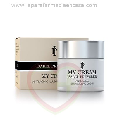 Isabel Preysler My Cream Crema Antiedad está basada en la avanzada tecnología de las células madre, mejora la densidad de la piel y aporta firmeza y elasticidad, posibilitando una intensa recuperación cutánea. Repara los tejidos dañados por los efectos de la edad y contiene el complejo iluminador LUMI-IPR que combate la formación de manchas y aporta una luminosidad muy especial a la piel. Protege la piel de los radicales libres, manteniendo el tono más uniforme.