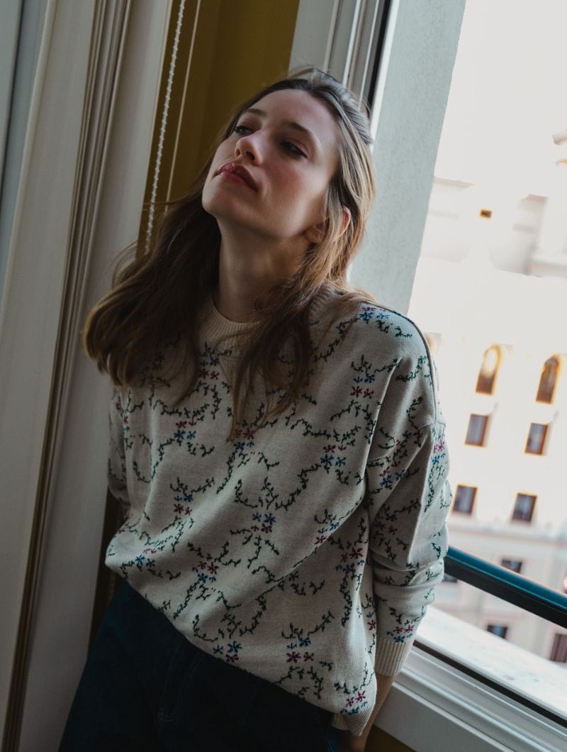 El jersey jacquard mujer beige es una prenda de edición limitada fabricada en España.