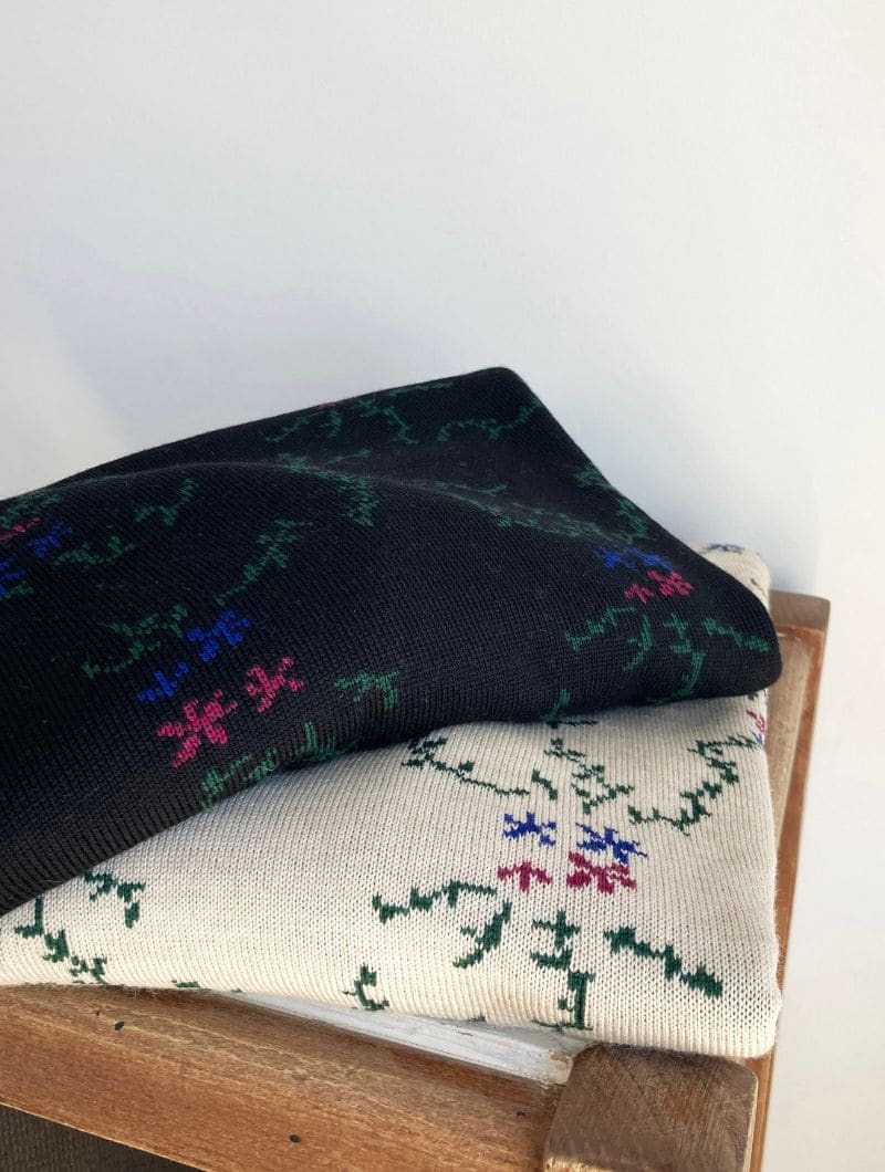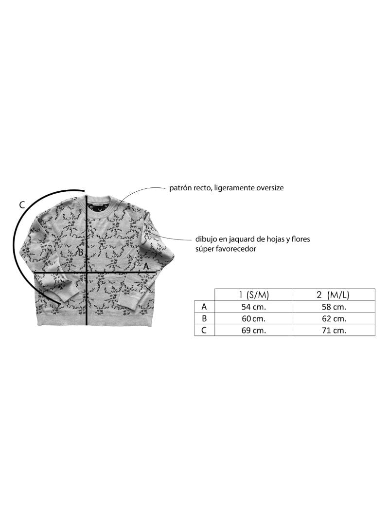 Este jersey beige de corte recto presenta un original jacquard de hojas y flores de colores. Su patrón relajado sin ser oversize, sienta genial a todo tipo de siluetas y combina bien con camisas, camisetas y vestidos.