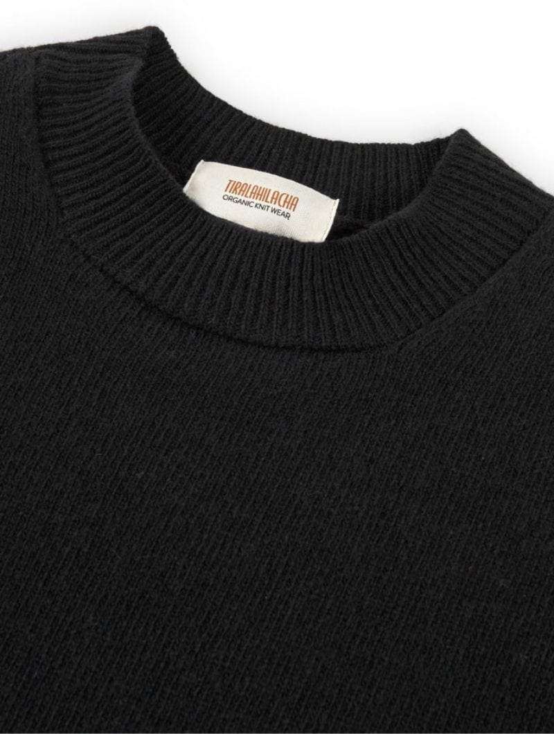 Elaborado con lana merino cardada, el jersey manga murciélago negro es cálido sin ser pesado y suave al tacto, ideal para el confort en climas fríos. La producción de la prenda se realiza en España, siguiendo prácticas responsables que respetan tanto el bienestar animal como el medio ambiente.