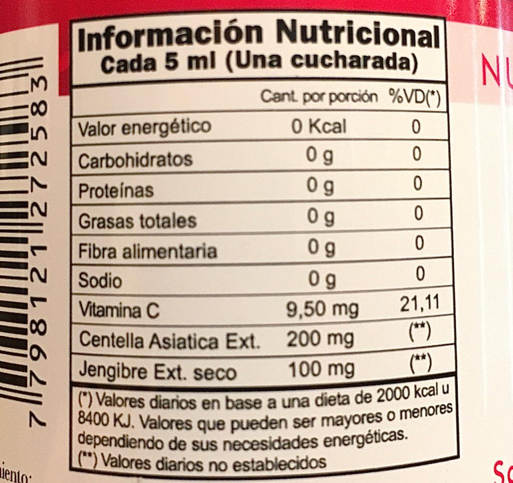 El Jugo de Centella Asiática y Jengibre reúne todos los principios activos necesarios para ofrecer un gran número de beneficios nutricionales. La actividad anticelulítica, circulatoria y antiinflamatoria son las principales funciones de esta alternativa natural. Potencia la estructura del tejido vascular mejorando el funcionamiento del sistema circulatorio. Es astringente, cicatrizante, reguladora de elasticidad de la piel y reafirmante. Estimula la producción de colágeno. Actúa beneficiosamente sobre las alteraciones en la microcirculación, previene edemas y mejora los problemas asociados a la hipertensión. El jengibre es antioxidante natural con un alto porcentaje en vitaminas, en especial B6 y vitamina C y un alto contenido de minerales: calcio, fosforo, magnesio, potasio y zinc. Favorece la salud cardiovascular, permite que la sangre se mantenga fluida y reduce el colesterol. Es un gran aliado de las defensas del organismo por su poder bactericida.