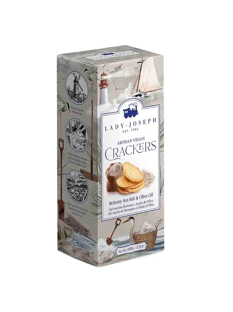 Las Lady Joseph Crackers Sal Marina de Bretaña son galletas saladas gourmet con una textura crujiente y un sabor refinado gracias a la sal marina de Bretaña, rica en minerales. Ideales para disfrutarlas solas o acompañadas de quesos, patés o embutidos, son una opción versátil y elegante para cualquier ocasión.