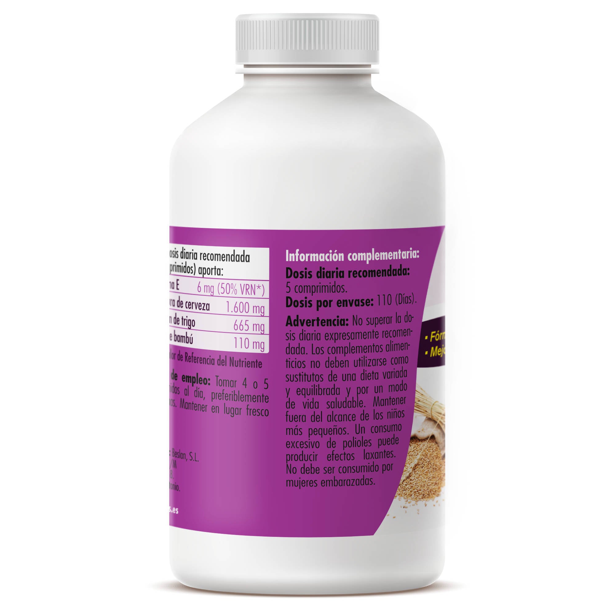 Tomar de 4 a 5 comprimidos al día, preferiblemente en ayunas. Mantener en lugar fresco y seco. |