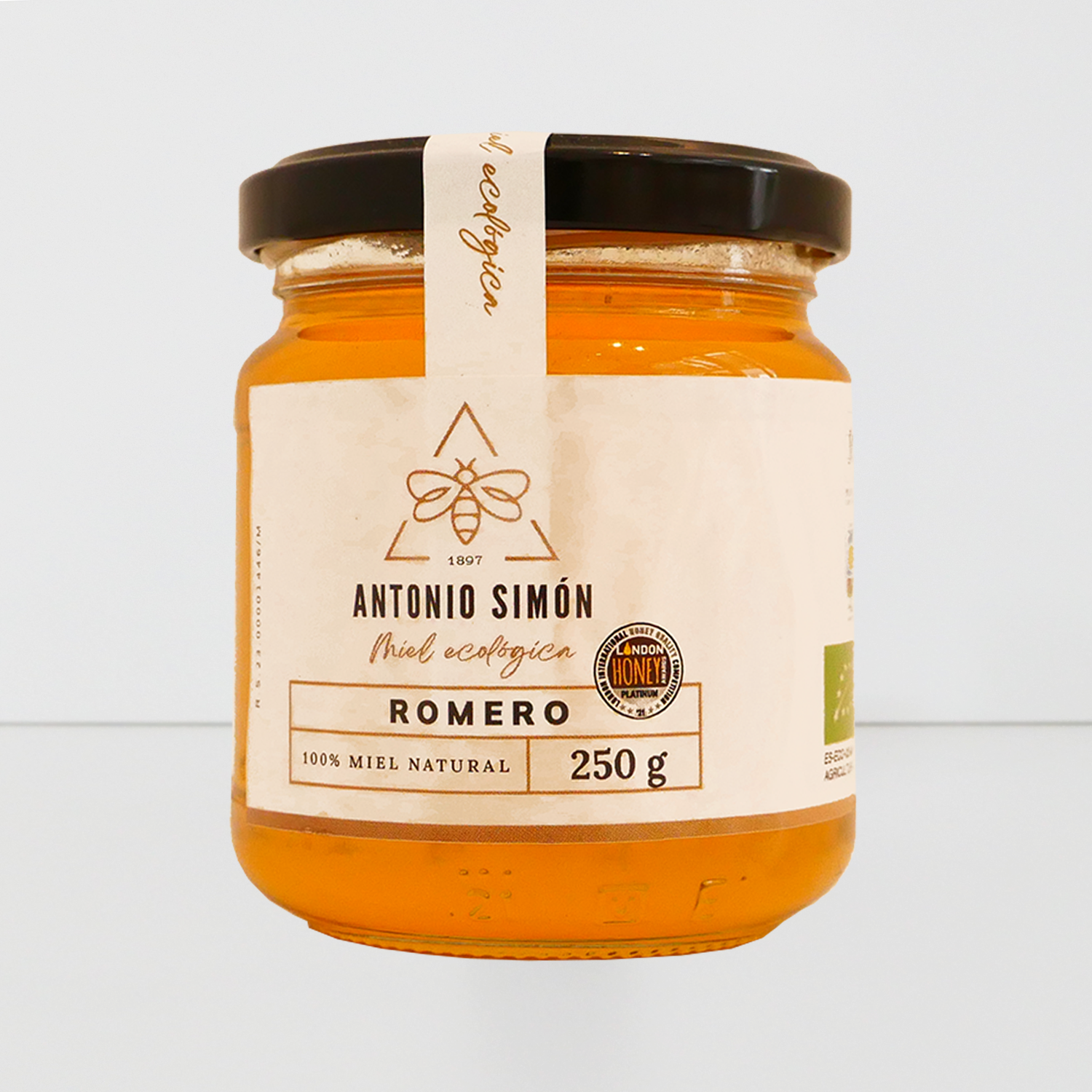 Miel de romero ecológica recolectada durante la primavera en Patones (Madrid). Una de las favoritas entre los chefs y los aficionados a los productos gastronómicos. Tiene un color claro y ofrece un sabor suave muy floral.