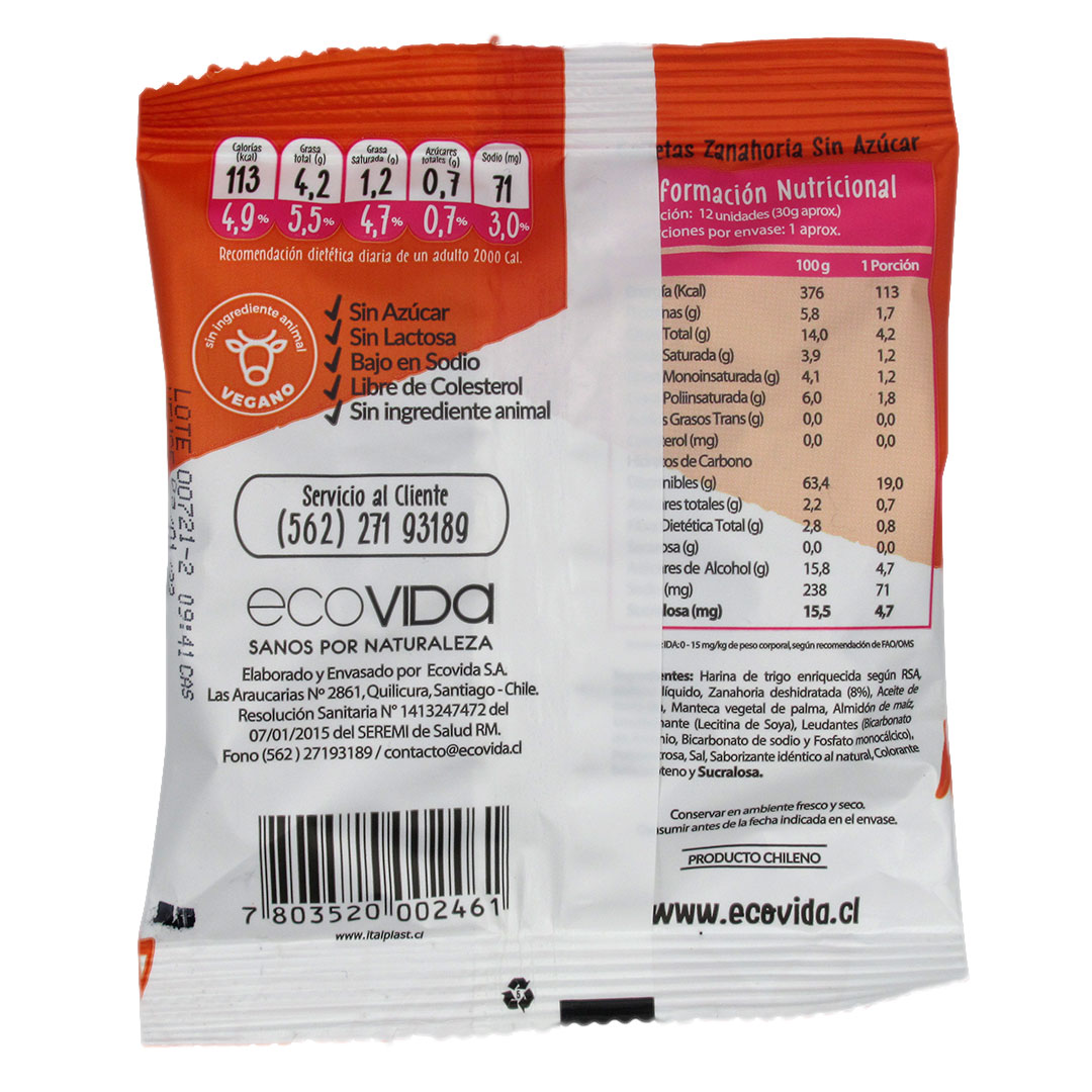 Mini Galletas de Zanahoria Sin Azúcar 30 grs marca Eco Vida