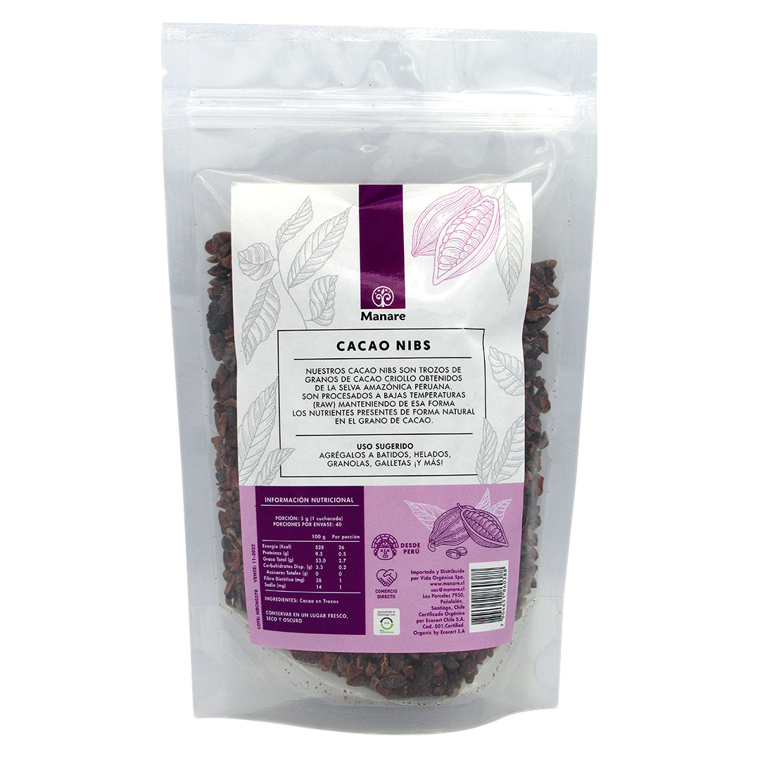 Ingredientes: 100% cacao nibs orgánico.