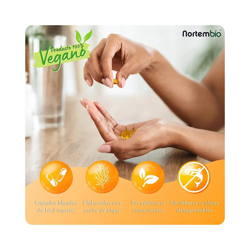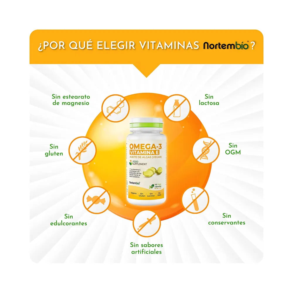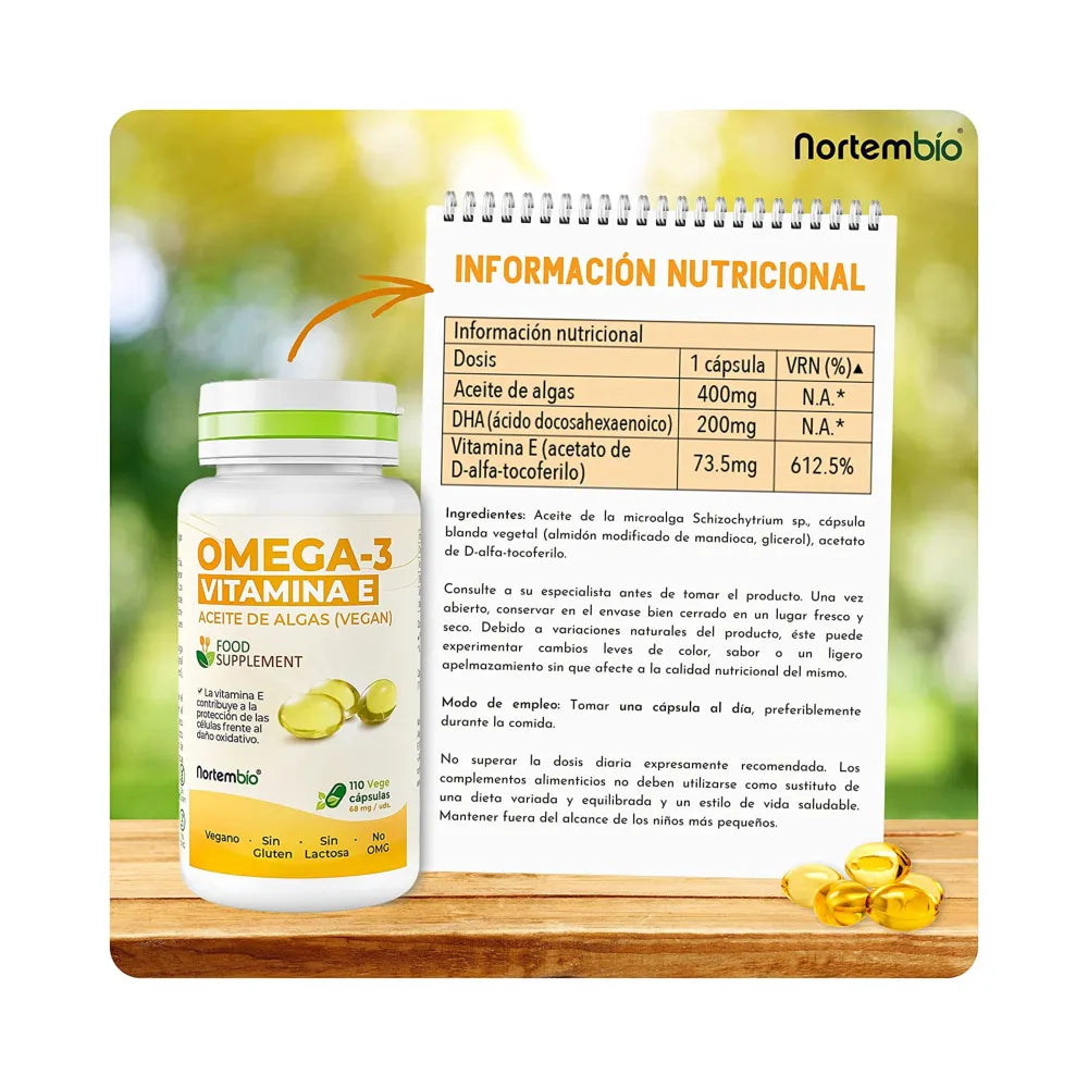 ? OMEGA 3 VEGANO Y VITAMINA E: Cápsulas blandas enriquecidas con 400 mg de Aceite de Algas.