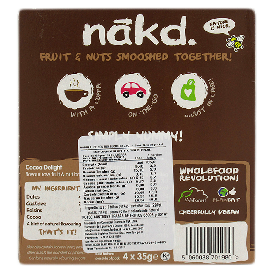 4 barrasBarra cruda de fruta y frutos secos. Elaborada con ingredientes 100% naturales, su consistencia es suave e irresistible. Lo que se obtienes en cambio, es una deliciosa combinación de frutas y mani, suavemente molidas en un nutritivo snack fácil de llevar a donde tu quieras.