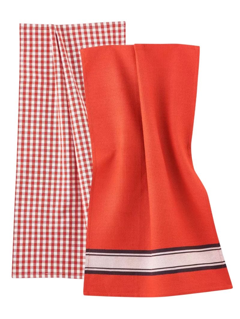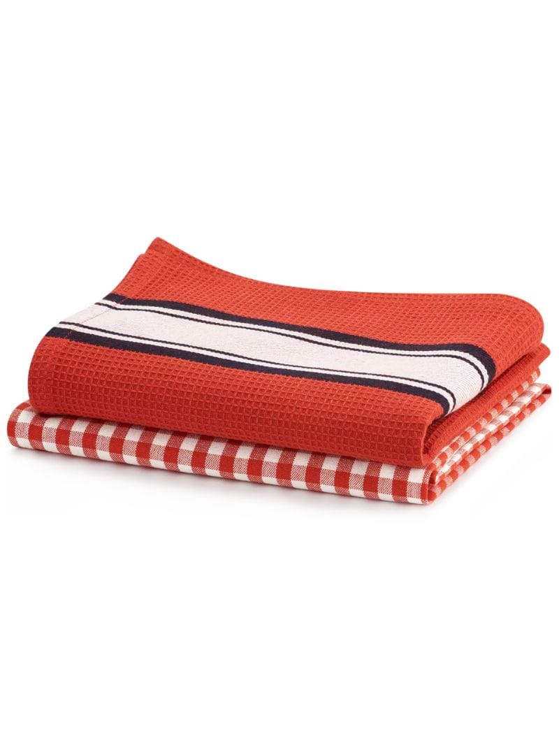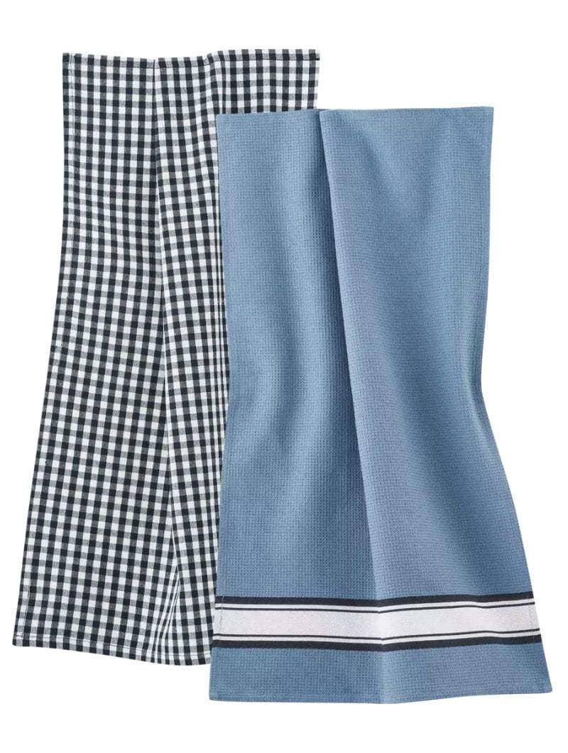Estos paños no solo son prácticos, sino que también aportan una estética vibrante a tu cocina. El pack contiene un paño de punto fino de diseño a cuadros y otro de punto gofre con un atractivo patrón.