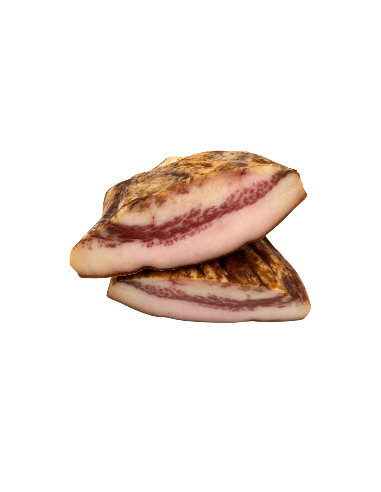 - Producto artesanal procedente del cerdo adulto alimentado de manera 100% natural y criado en extensivo. La Papada es una pieza obtenida de las regiones torácicas y abdominales que pasa por el tradicional proceso de salazón, adobado y curado, cuyo toque de tomillo y romero le concede gran prestancia a un producto ya de por sí muy aromático.