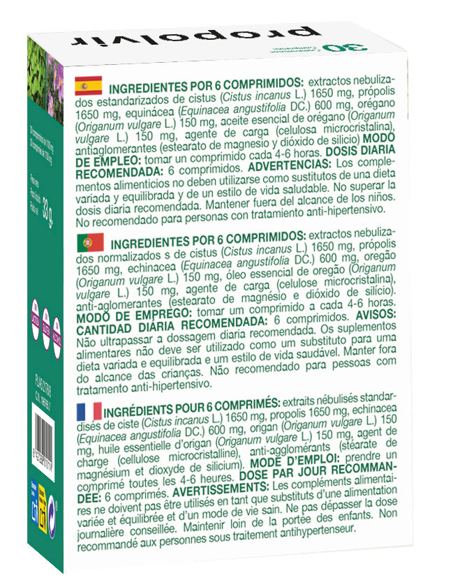Complemento alimenticio a base de extractos nebulizados estandarizados de cistus, própolis, equinácea y orégano y aceite esencial de orégano. La equinácea contribuye al buen funcionamiento del sistema inmune.