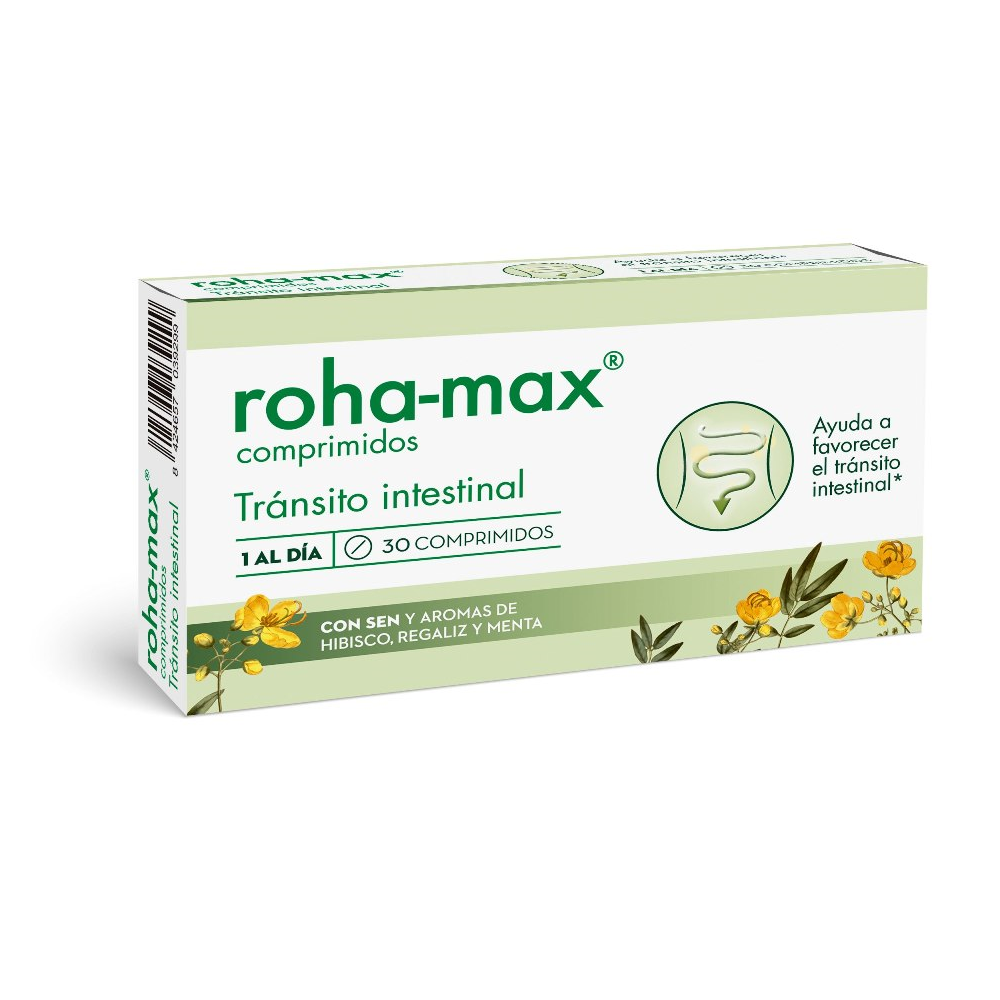 Los cambios de hábitos, la falta de sueño, el exceso de trabajo e incluso el estrés son aspectos que pueden alterar el ritmo de nuestro tránsito intestinal. Si necesitas devolver la regularidad a tu organismo, prueba Roha-Max 30 comprimidos, que aprovecha los efectos de las hojas de sen (Cassia angustifolia), la Cassia angustifolia ayuda al mantenimiento normal del tránsito intestinal. Roha-Max Tránsito Intestinal es un complemento alimenticio con ingredientes de origen natural. La formulación exclusiva de Roha-max, a base de hojas de sen, hibisco, regaliz y menta que te ayudarán a mantener el tránsito intestinal regular.