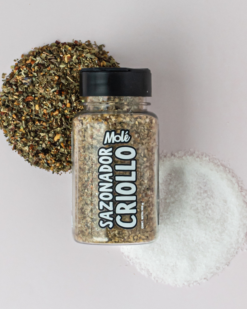 Mezcla de sal entrefina, especias para chimichurri y cebolla deshidratada