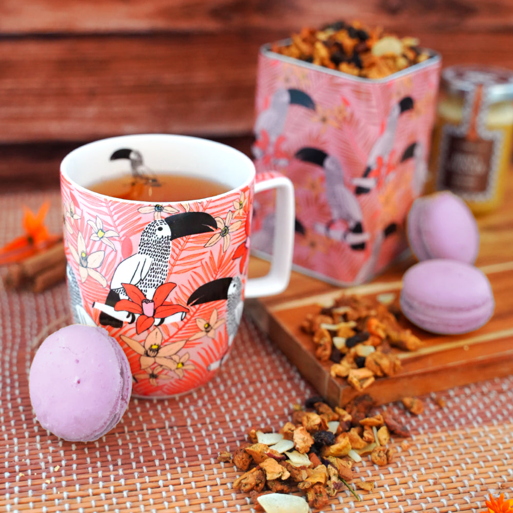 Tea Shop presenta un set de accesorios imprescindibles y prácticos para disfrutar tus tés e infusiones favoritos. La taza de porcelana Fine Bone China, es considerada una de las mejores porcelanas del mundo debido a su blancura, translucidez y resistencia a los golpes. Incluye filtro de acero inoxidable con recubrimiento de silicona para evitar quemaduras. Una lata de 100 gramos de doble tapa ideal para conservar los tés lejos del alcance de la luz solar y la humedad. Por último, incluye una medida de acero inoxidable muy práctica y resistente, ideal para medir la cantidad correcta de té antes de su infusión.