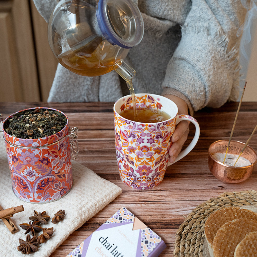 Tea Shop presenta un set de accesorios imprescindibles y prácticos para disfrutar tus tés e infusiones favoritos. La taza de porcelana Fine Bone China 550ml es considerada una de las mejores porcelanas del mundo debido a su blancura, translucidez y resistencia a los golpes. Incluye filtro de acero inoxidable y tapa. Una lata redonda de 250 gramos ideal para conservar los tés lejos del alcance de la luz solar y la humedad. Por último, incluye una medida de acero inoxidable muy práctica y resistente, ideal para medir la cantidad correcta de té antes de su infusión.