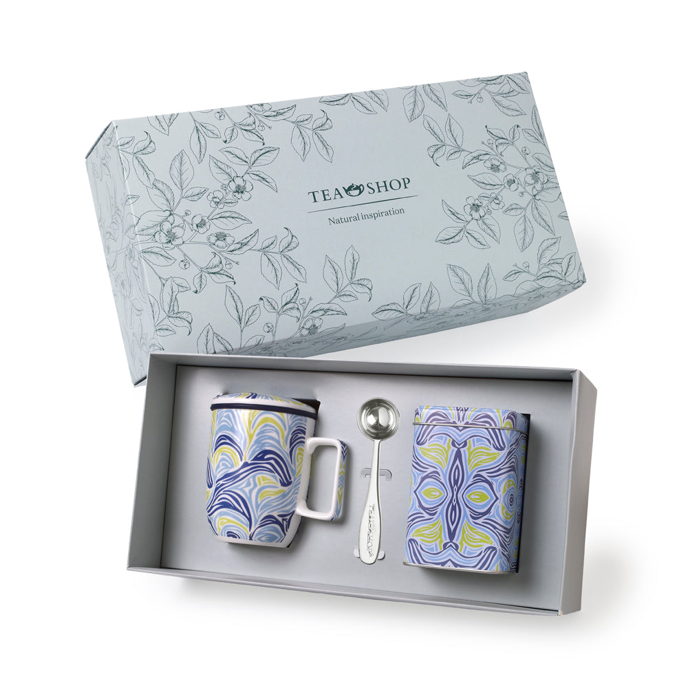 Tea Shop presenta un set de accesorios imprescindibles y prácticos para disfrutar tus tés e infusiones favoritos. La taza de porcelana Fine Bone China, es considerada una de las mejores porcelanas del mundo debido a su blancura, translucidez y resistencia a los golpes. Incluye filtro de acero inoxidable con recubrimiento de silicona para evitar quemaduras. Una lata de 100 gramos de doble tapa ideal para conservar los tés lejos del alcance de la luz solar y la humedad. Por último, incluye una medida de acero inoxidable muy práctica y resistente, ideal para medir la cantidad correcta de té antes de su infusión.