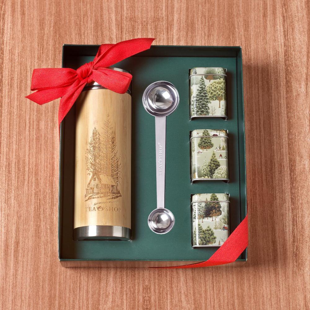 Perfecto para quienes disfrutan de un té estén donde estén. Este set contiene todo lo necesario para poder hacer un té en cualquier momento. Incluye un Travel Tea de acero inoxidable, cierre hermético, infusor en el interior y con acabado en elegante bambú. El set también incluye tres minitins rellenos de: 25g Té Rojo Pu Erh Choco Turrón, 25g Infusión Sweet Turrón, 25g Rooibos Red Velvet. Perfectos para llevártelos donde quieras y mantenerlo en buen estado. Por último, una medida dúo que ayudará a saber exactamente los gramos necesarios para que el té quede perfecto.