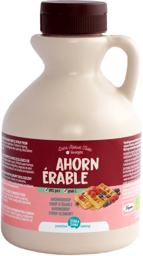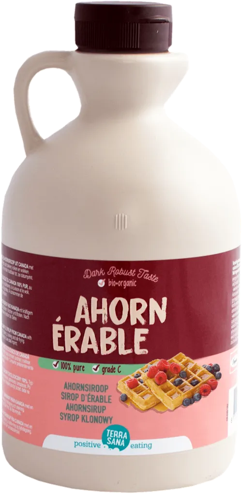 ¿Quieres tener un buen jarabe de arce en tu cocina? Entonces este endulzante biológico macrobiótico es imprescindible. El sabor del arce es ligeramente acaramelado. El jarabe de arce proviene del arce. Este árbol produce cada año una savia azucarada. En Canadá, esta savia se extrae cada primavera y se hierve lentamente para obtener jarabe. De ese modo, se consigue una deliciosa alternativa vegetal a la miel o un sustituto no refinado del azúcar. ¿La diferencia entre el jarabe de arce grado A y el jarabe grado C? El grado C es de color marrón más oscuro y tiene un sabor más intenso y acaramelado de arce. ¡Oro líquido! También disponible in 250 ml y 1 litro (garrafa o jarro de vidrio) y grado A.