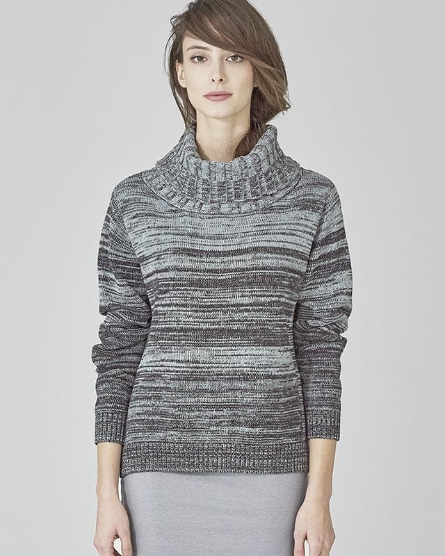 Ajuste normal, generoso cuello alto y espalda extendida. Sus tonos moteados y su cálido tejido hacen que sea una prenda perfecta para los días grises de invierno.