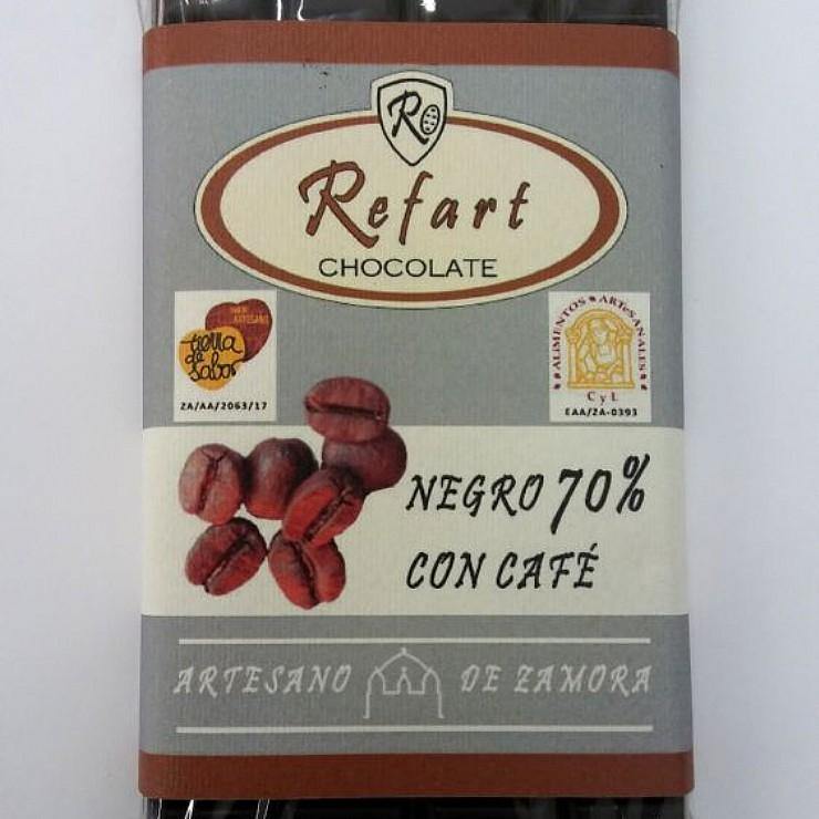 Tableta de chocolate negro 70%. Selección de origen Ecuador, Costa de Ivory y Sao Tomé-and-Principe. Chocolate de aroma floral, amargor intenso y notas de madera con un toque de café.