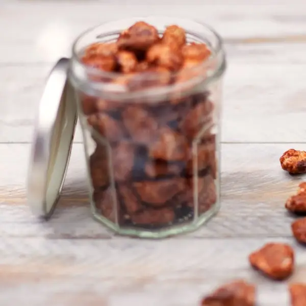 Una vez que el caramelo se ha endurecido, se rompe en trozos y se envasa en un tarro de cristal con tapa. El tarro de cristal es ideal para conservar las almendras garrapiñadas, ya que protege el producto de la humedad y de posibles contaminaciones externas.